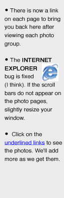 We tried to make them easy to navigate, but they may load a little slow if you have a dial-up connection, so be patient. E-mail your digital photos to us and we'll post them here, too. Just send them to Howard@HowardCarpenter.com and we'll get them up as soon as we can. Give us some feedback and let us know if this works for you. We'll change it if we need to. Thanks, Mary E. & Rebel |